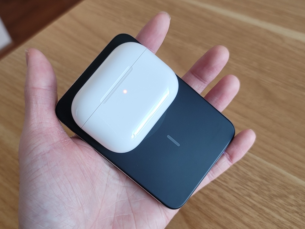 充電ケースはAirTag仕様なので、いざ紛失した場合でもiOSアプリ「探す」から高精度な位置情報が探れます。