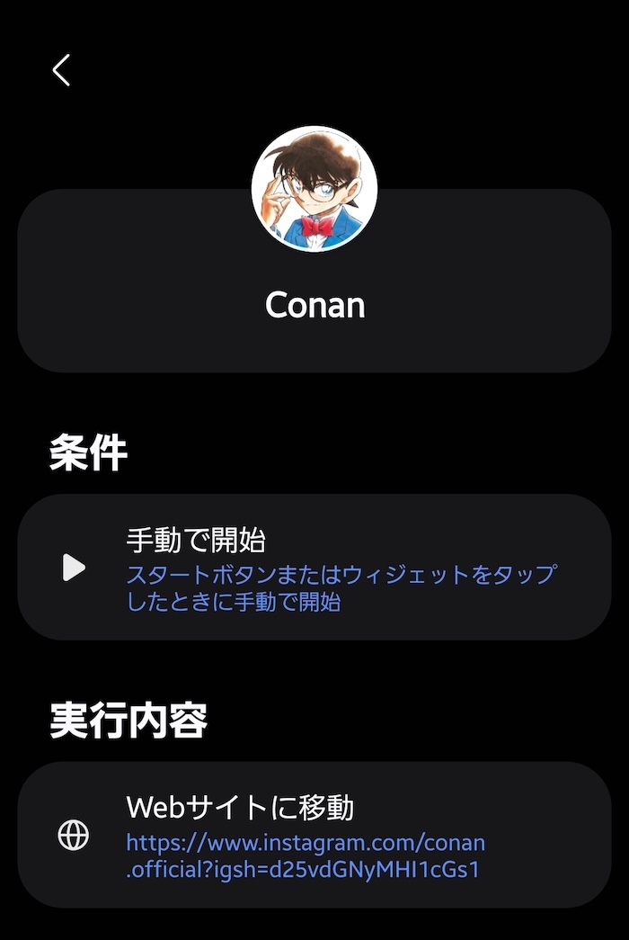 ルーチンはホーム画面から起動できるので事実上ホーム画面から特定アカウントページを1タップで開けるようになります。