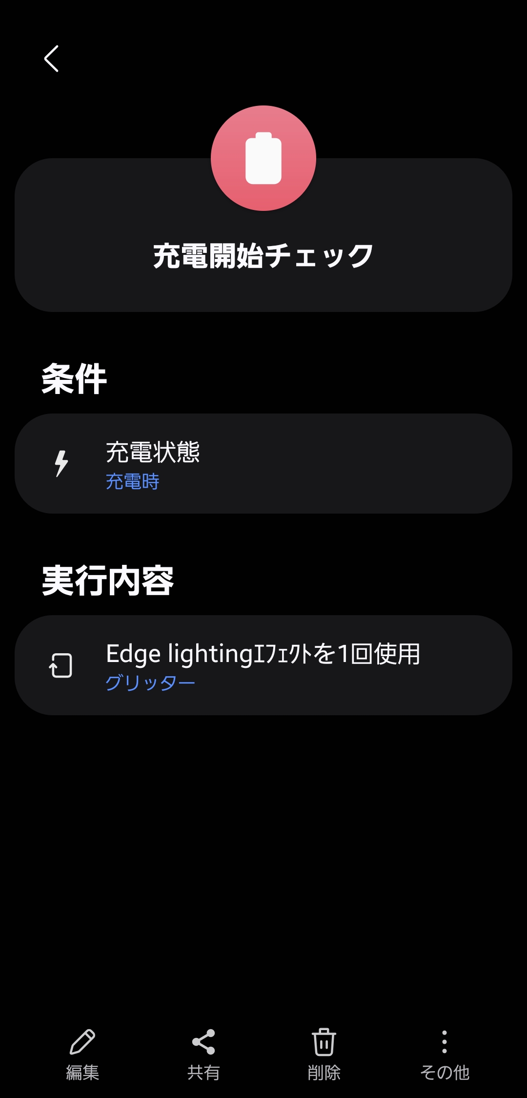 有線、無線に関係なく充電開始時にEdge lighting(Galaxyスマホ側面部のライト)を一時的に点灯させます。