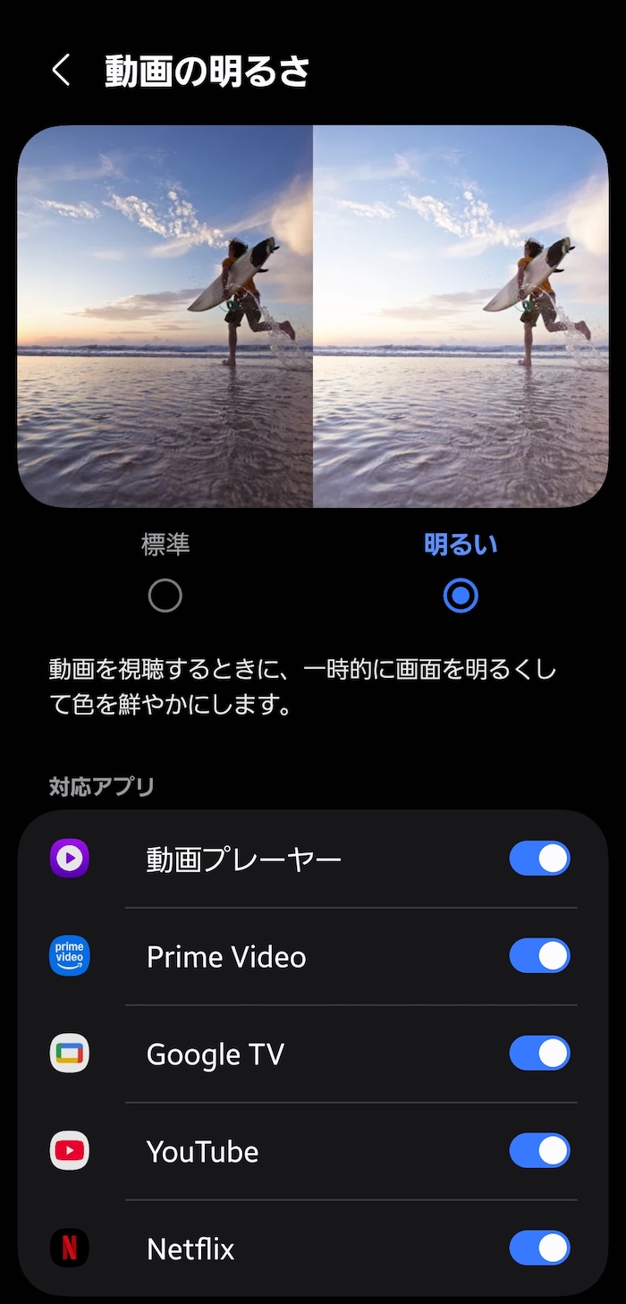 4. 動画を視聴するときだけ画面を明るくする(発色を鮮やかにする)