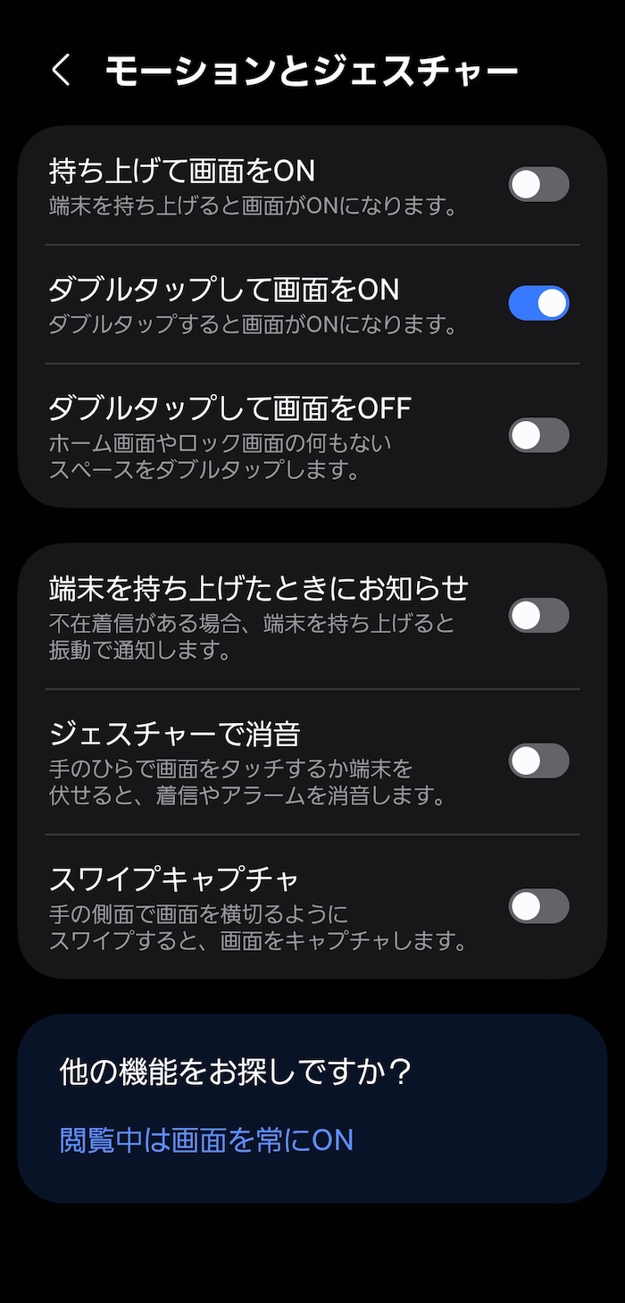 - 「ダブルタップして画面をON」を機能ONに変更