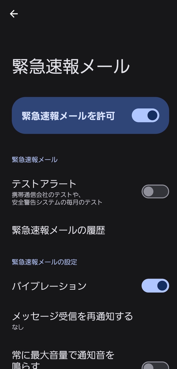1. 緊急速報メールの仕様を確認する(初期状態だとサイレント無視の爆音仕様)