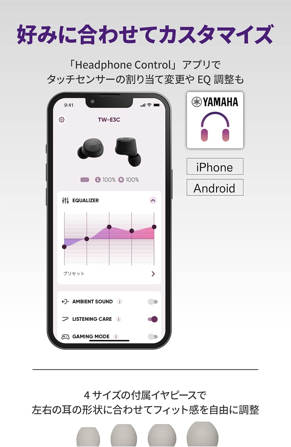 ヤマハ(YAMAHA)が展開する人気ワイヤレスイヤホン「TW-E3C」。楽器の音描写に強みを持つワイヤレスイヤホンです。