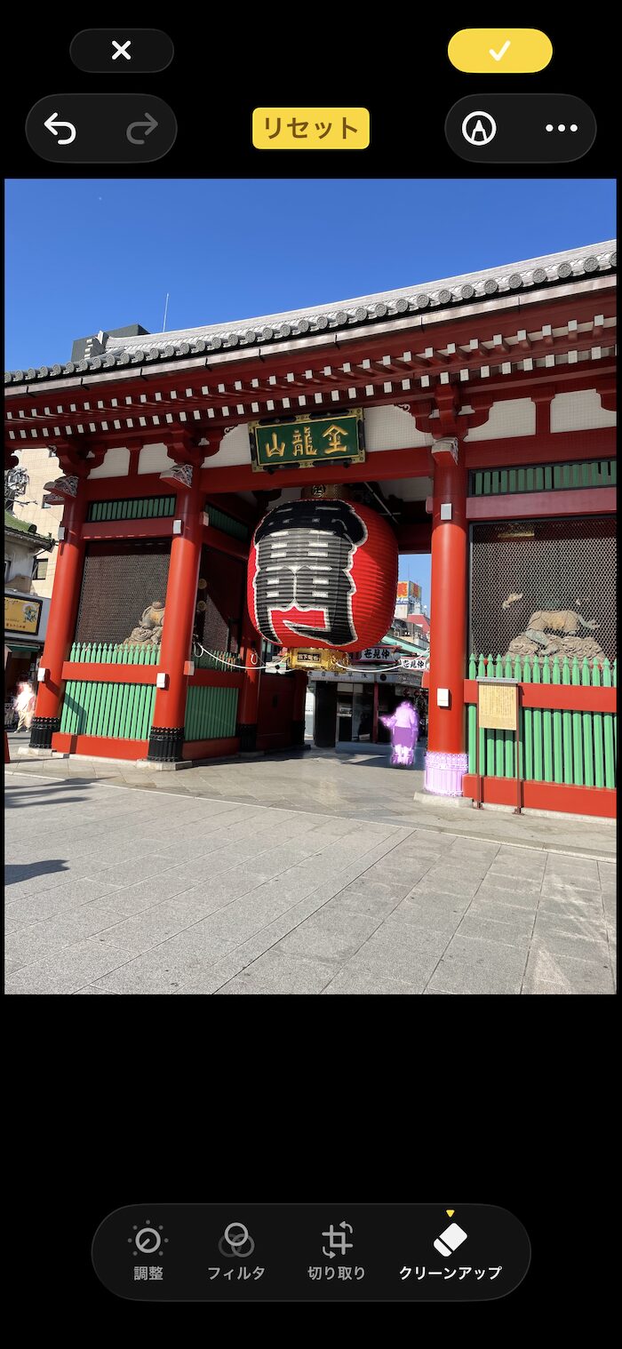 以下のサンプル写真では門の下にいる人物を削除しました。
