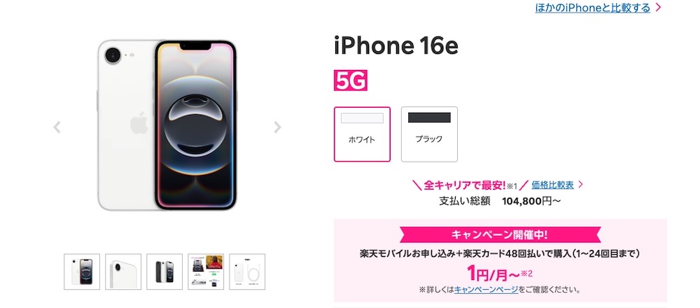 楽天モバイルがiPhone 16eを月額1円で使えるキャンペーンを実施中です。