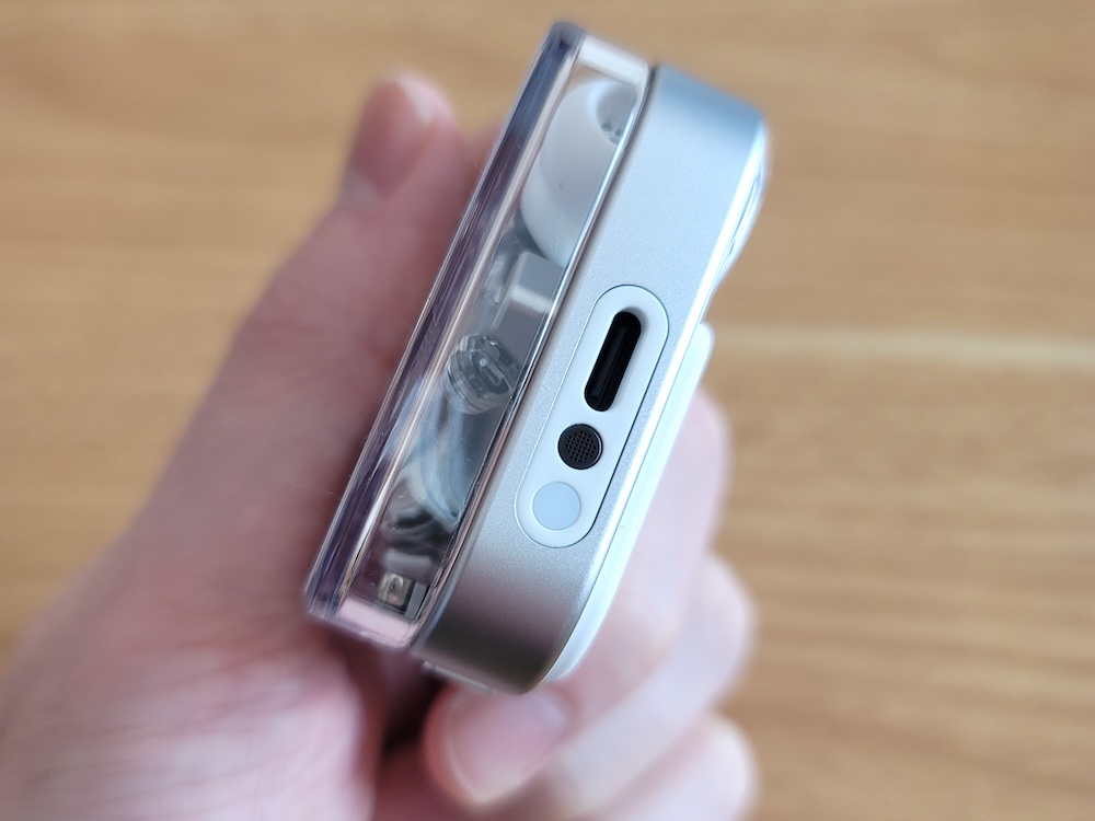サイズ感は前作まま。片手で握り込めるサイズ感です(寸法は縦横5.5cm、厚み2cmほど)。