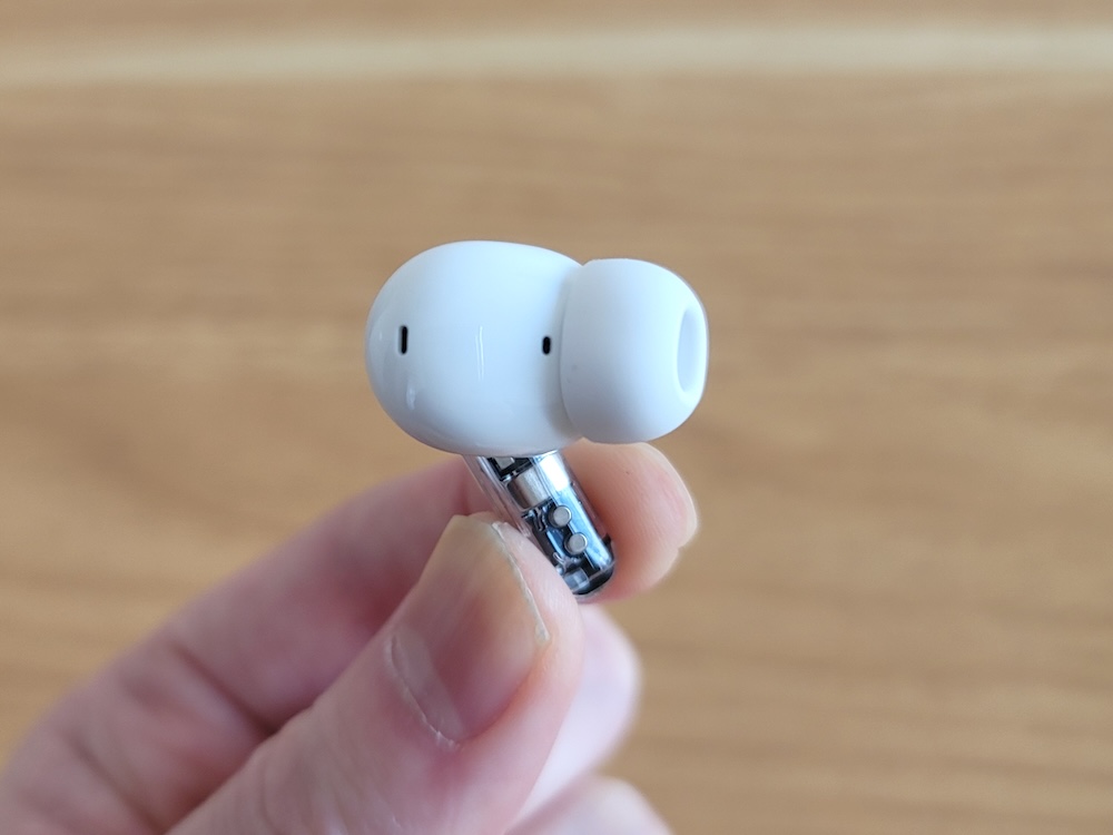 ステム部分に感圧ボタンの搭載あり。オーディオ操作、音量調整、通話対応など可能です。
