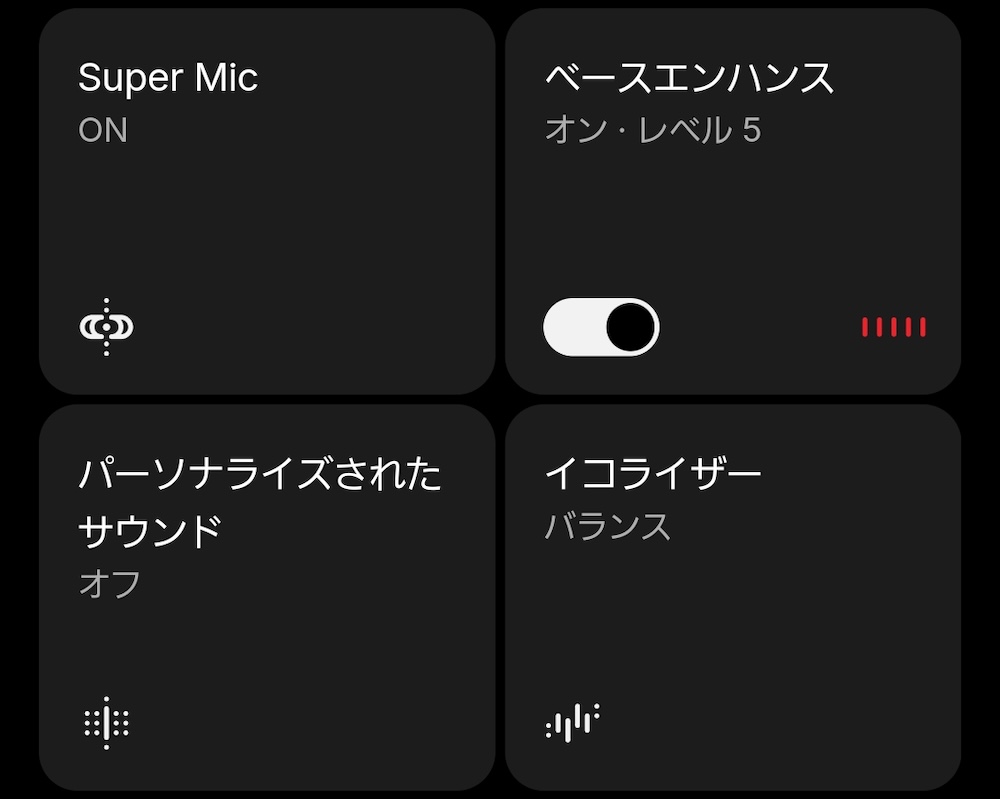 ソニーのEXTRA BASSのような音こもらずに低音だけ盛れるやつです。低音あるいはドラムの振動感がほしい人だとMAX5に設定するとテンション上がるのでおすすめ。