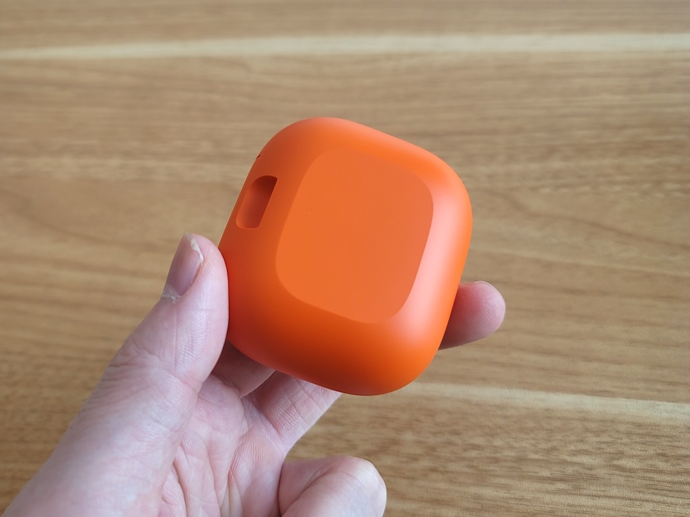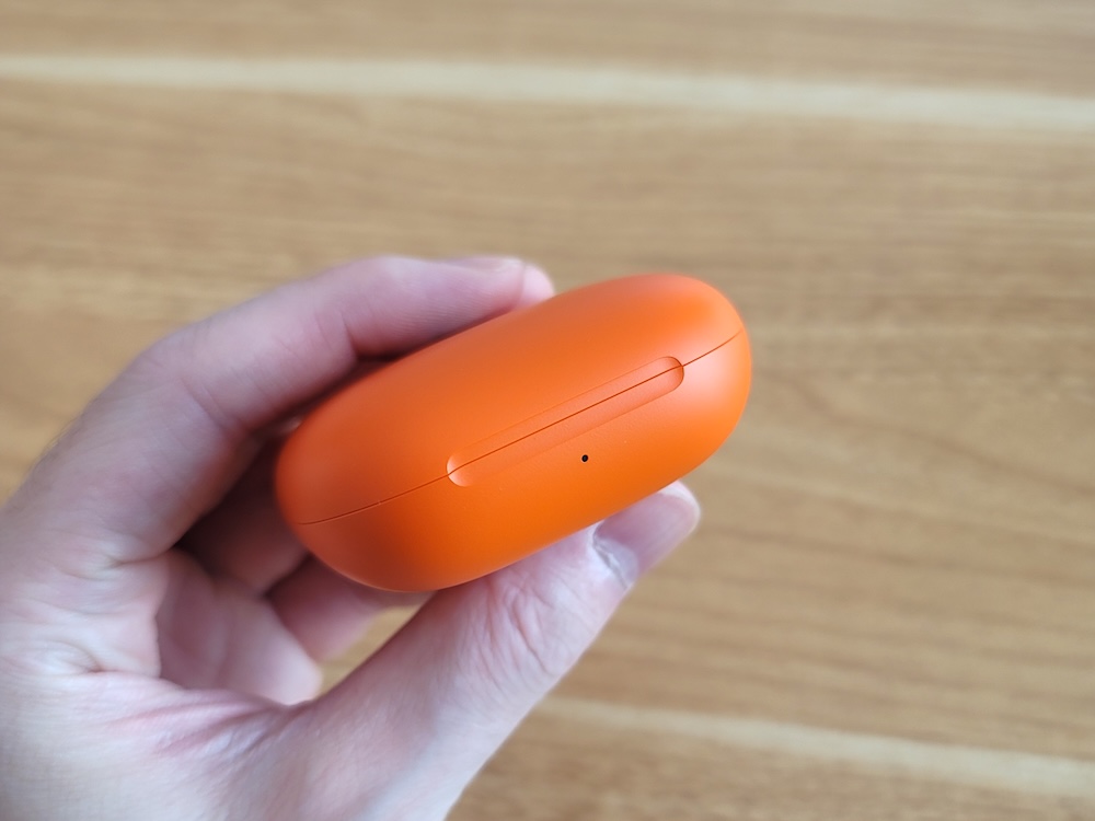充電ケースは前作モデルよりも1割ほど小さめ(公称17%サイズ減)。ほぼ片手で握り込めるサイズ感です。