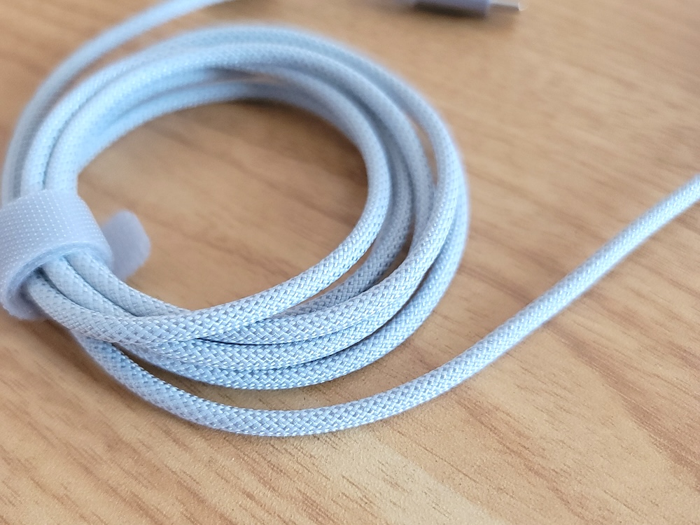 ケーブルは編み込み式。折ると折グセが付きます。