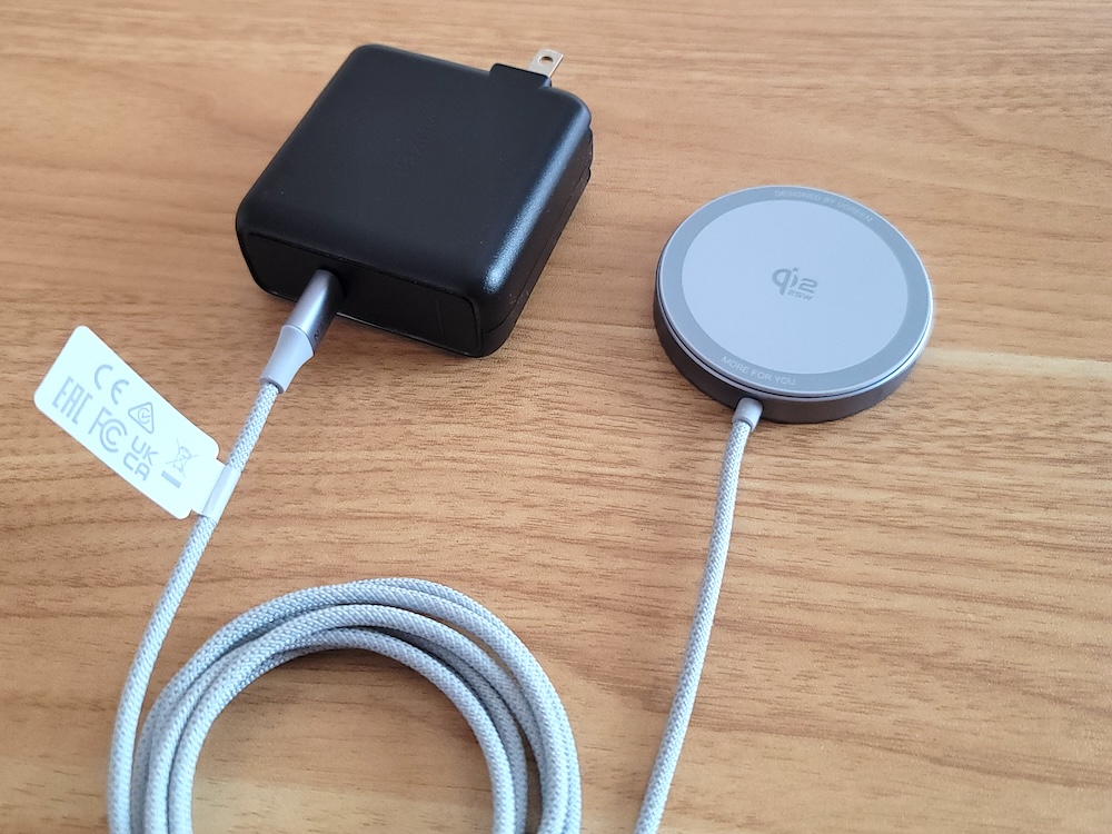 Qi2.2仕様、最大25出力で充電するには45W以上で出力できる電源アダプター(USB PD充電器)が必要です