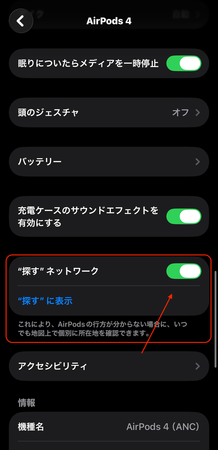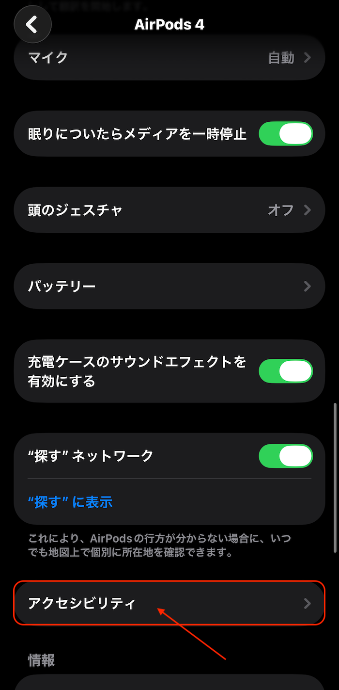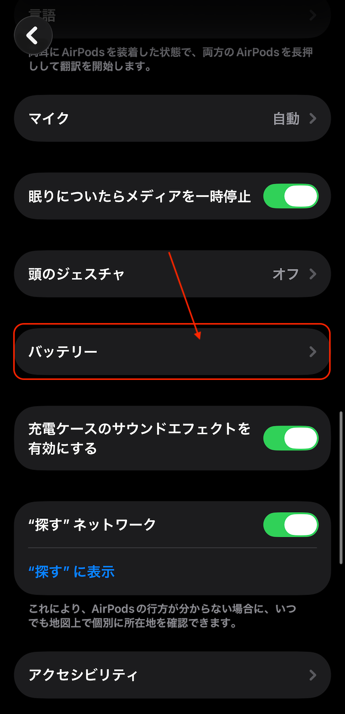 - 「AirPods」項目を開く