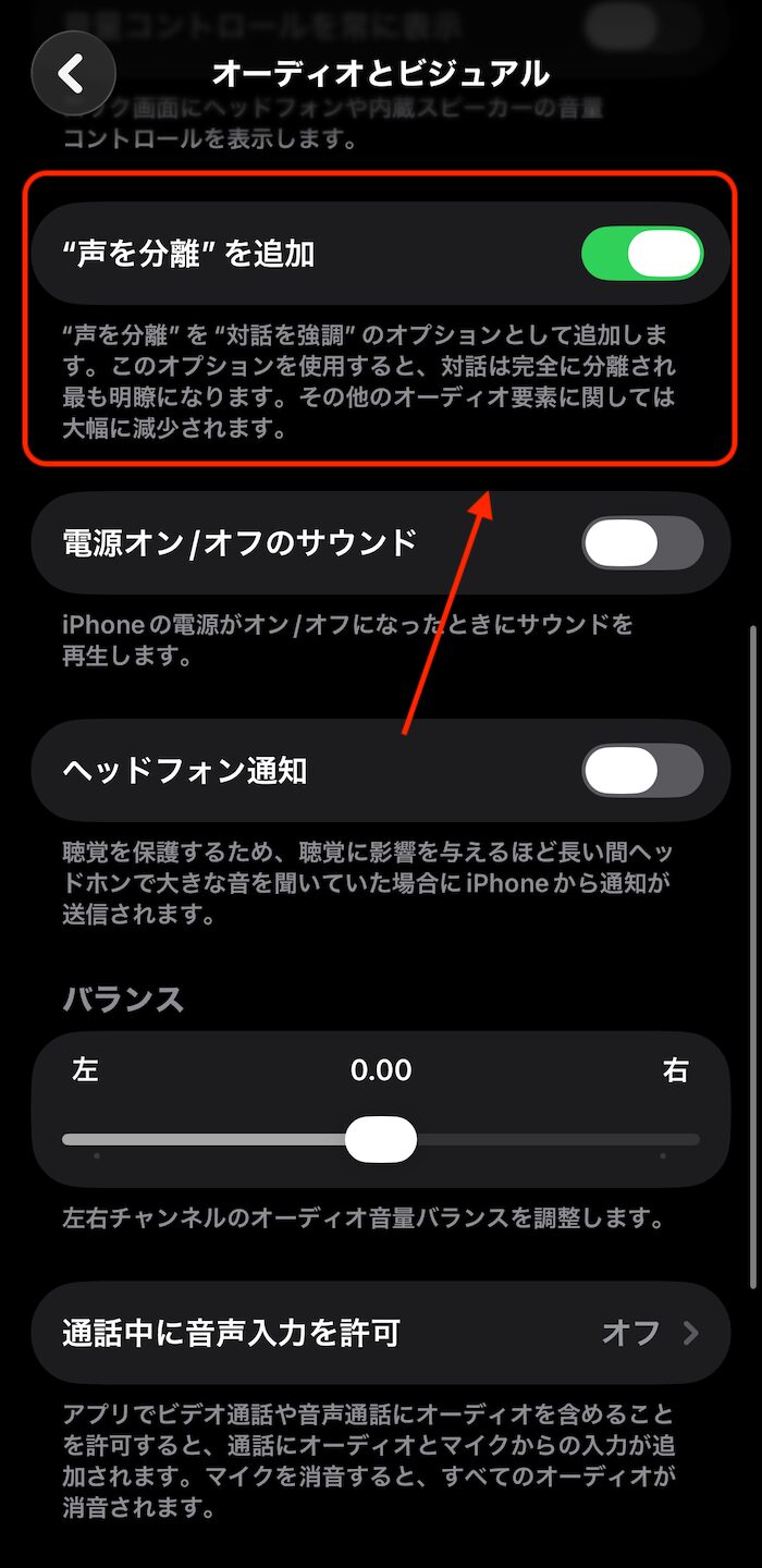 - 「"声を分離"」を追加をONにします