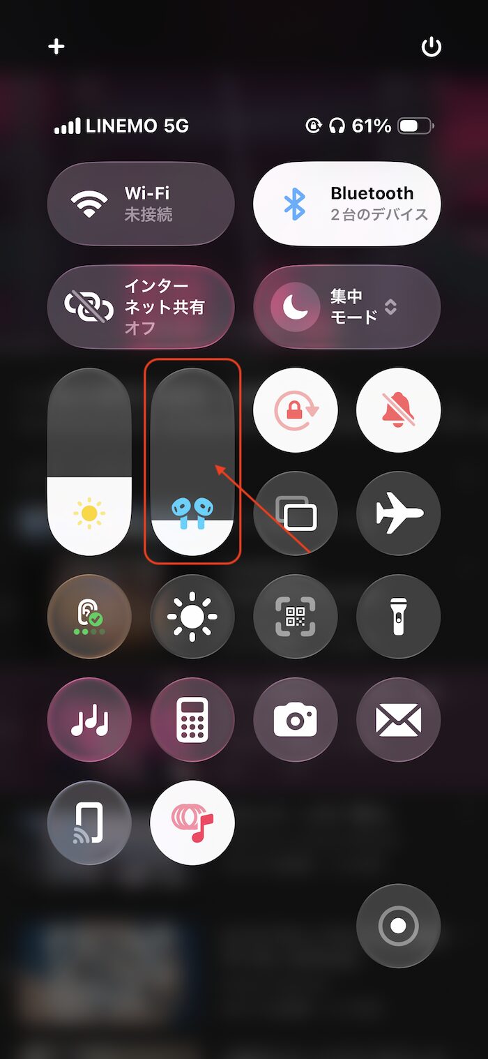 - 音量バーを長押し
