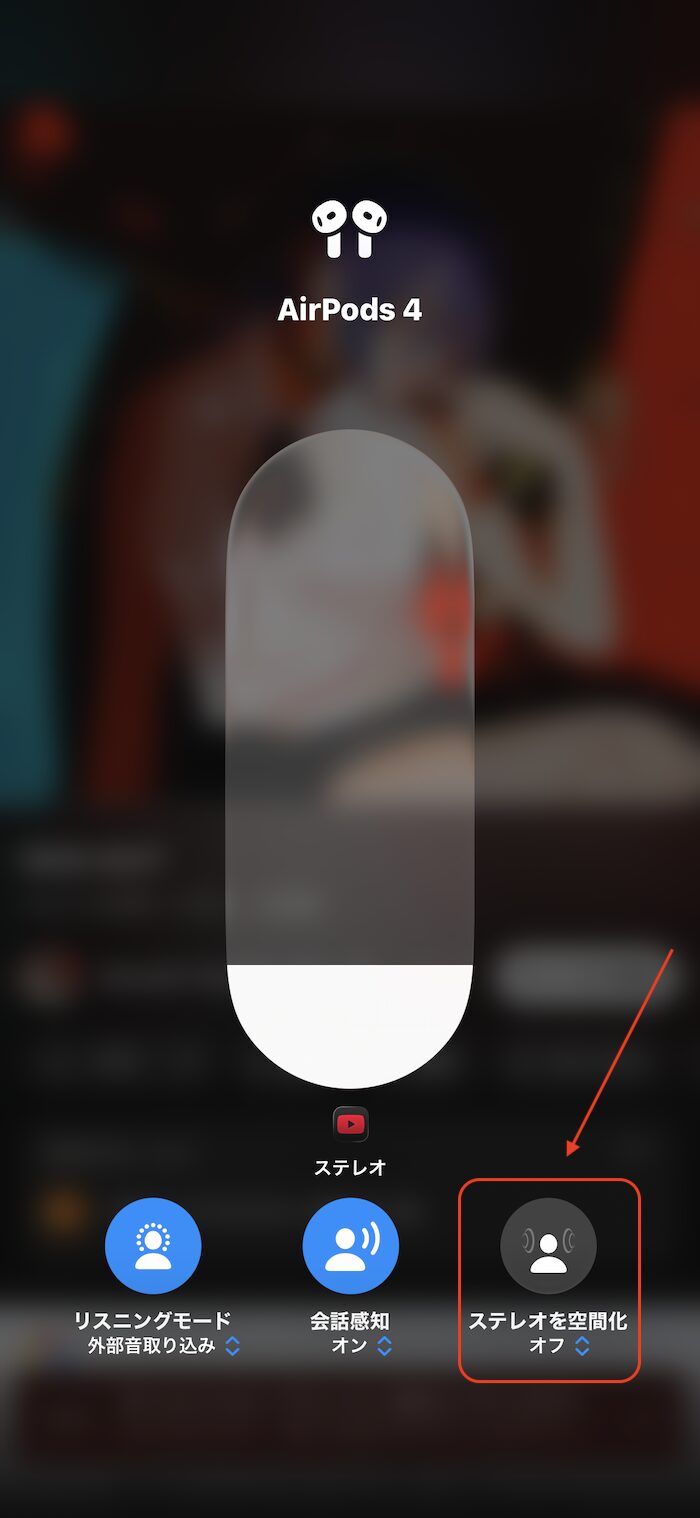 - 「ステレオを空間化」をタップ