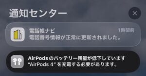 AirPodsのバッテリー残量が少なくなったり、あるいは充電が完了するとロック画面に通知を出しといてくれます。