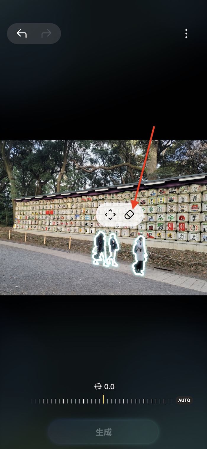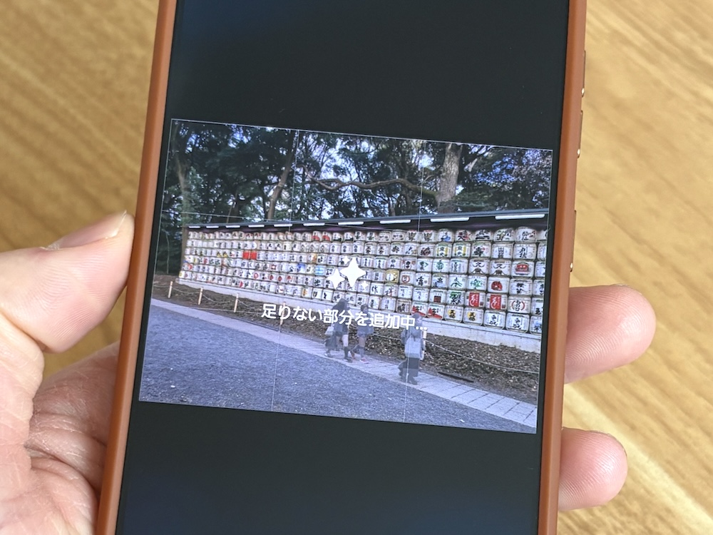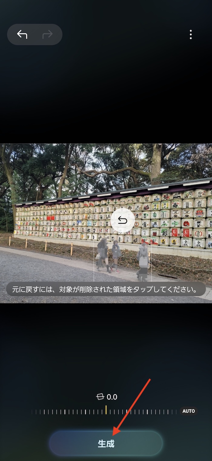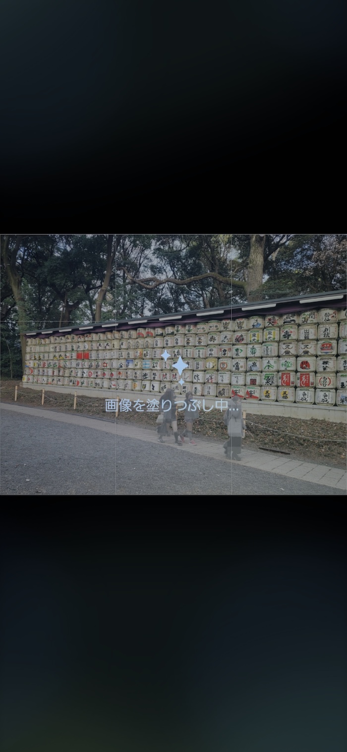 最後に画面最下部「生成」をタップすると修正後の写真の生成が始まります。