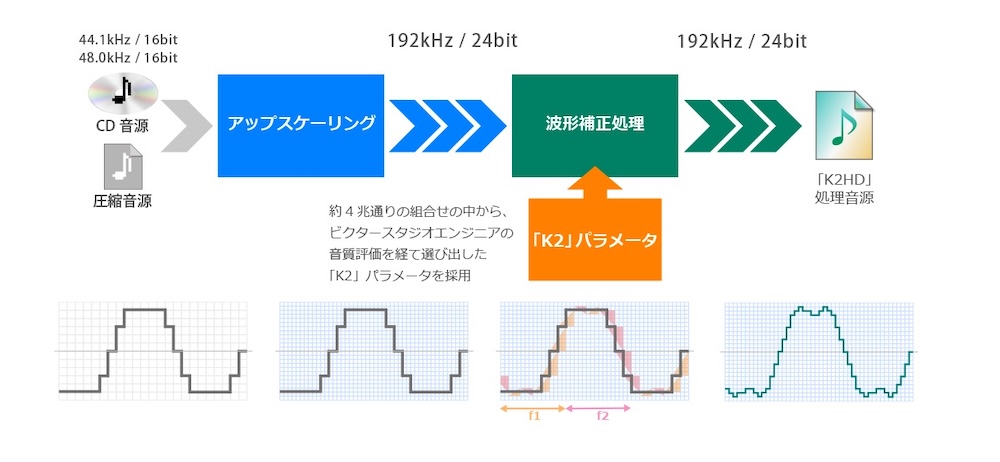 Victorが展開する音源のアップスケーリング機能「K2テクノロジー」。